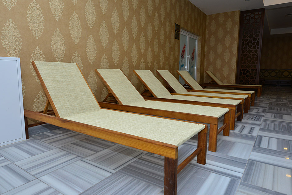 Sırt kısmı ayarlanabilir şezlonglar misafirlere farklı oturma pozisyonları sunar.