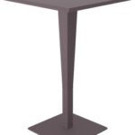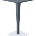 Polipropilen ve cam elyaf karışımı hammaddeden mamul rattan efektli demonte ayak ve boyalı alüminyum tabanın, werzalit tablanın tamamlayıcılığı ile oluşan Riva Bar kare masa, 70×70 cm ölçüsü, koyu gri, kahverengi ve beyaz tabla renkleriyle tüm hava şartlarına uyumlu olup, uzun yıllar şıklığıyla iç ve dış mekanlarınızı alte
