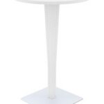 Polipropilen ve cam elyaf karışımı hammaddeden mamul rattan efektli demonte ayak ve boyalı alüminyum tabanın, werzalit tablanın tamamlayıcılığı ile oluşan Riva Bar yuvarlak masa, 70Ø cm ölçüsü, koyu gri, kahverengi ve beyaz tabla renkleriyle tüm hava şartlarına uyumlu olup, uzun yıllar şıklığıyla iç ve dış mekanlarınızı alte